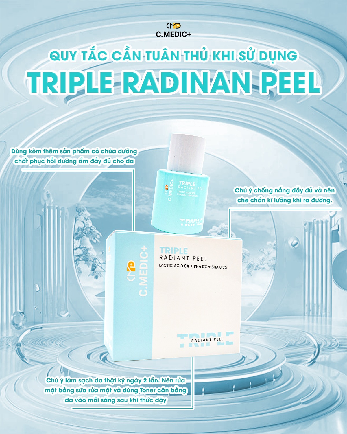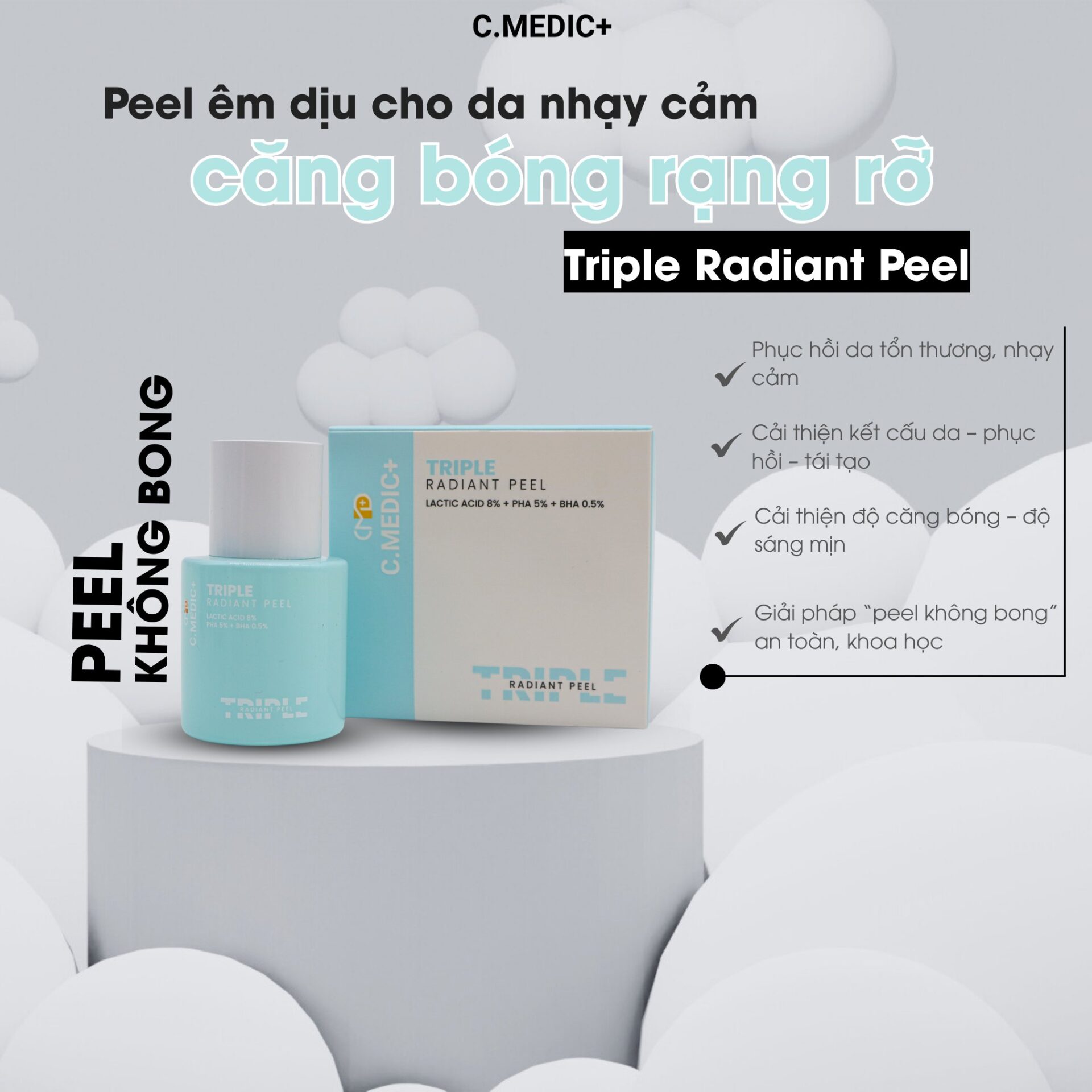 Ngành làm đẹp hiện nay đang chứng kiến sự chuyển mình mạnh mẽ với những giải pháp an toàn, hiệu quả và không xâm lấn. Một trong số đó chính là peel không bong, phương pháp tái tạo da hiện đại giúp khắc phục nhiều vấn đề mà vẫn giữ vững hàng rào bảo vệ tự nhiên. Nổi bật trong nhóm peel thế hệ mới là Triple Radiant Peel – công thức chuyên biệt cho da nhạy cảm, mỏng yếu, vừa phục hồi, vừa tăng mật độ và cải thiện cấu trúc da.